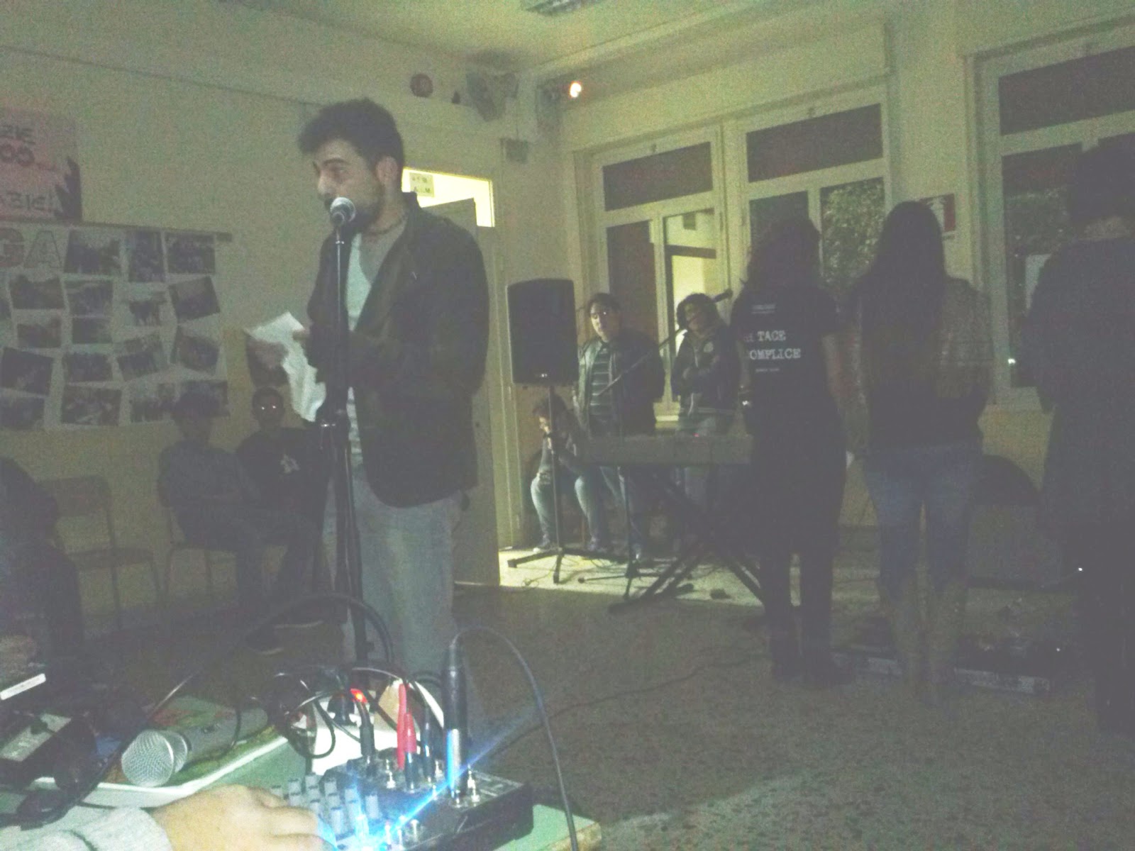 | Un momento dello spettacolo teatrale e musicale realizzato in collaborazione con gli studenti del Liceo come momento conclusivo della protesta (sabato 1 dicembre 2002). |