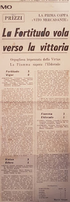 Per pura combinazione in quelle stesse ore di quella stessa domenica di maggio di quello stesso lontano 1972 in cui al campo Salacisi concludeva davanti a un numeroso pubblico il torneo e la Fortitudo si aggiudicava la coppa, a qualche migliaio di chilometri di distanza in un altro campo, al comunale di Torino, in uno scenario ben diverso... e con qualche spettatore in più la Juventus di Causio, Capello e Bettega batteva il L.R.Vicenza e vinceva il 14^ scudetto, mentre in un altro campo ancora, a Varese, negli stessi momenti Roberto Boninsegna centravanti dell’Inter, con un gol all’ultimo quarto d’ora, vinceva la classifica dei marcatori, superando di un goal Gigi Riva.